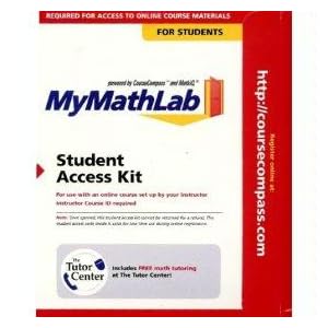 This access kit will provide you with a codeto get into MyMathLab,a personalized interactive learning environment, whereyou can learn mathematics and statistics at your own pace and measure your progress. In order to use MyMathLab, you will need a CourseID provided by your instructor; MyMathLab is not a self-study product and does require you to be in an instructor-led course. MyMathLab includes:Interactive tutorial exercises: MyMathLab's homework and practice exercises are correlated to the exercises in the relevant textbook, and they regenerate algorithmically to give you unlimited opportunity for practice and mastery. Most exercises are free-response and provide an intuitive math symbol palette for entering math notation. Exercises include guided solutions, sample problems, and learning aids for extra help at point-of-use, and they offer helpful feedback when students enter incorrect answers.