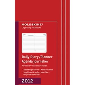 The Moleskine 2012 Large Daily Planner is dated from January 2012 to December 2012. Formatted to show each day on its own page, this popular planner style is now available with a red cover. Every Moleskine product is thread bound and has a cardboard bound cover with rounded corners, acid free paper, a bookmark, an elastic closure and an expandable inner pocket that contains the Moleskine history.Want to learn more information about Moleskine 2012 12 Month Daily Planner Red Hard Cover Large (Moleskine Legendary Notebooks (Calendars))?
